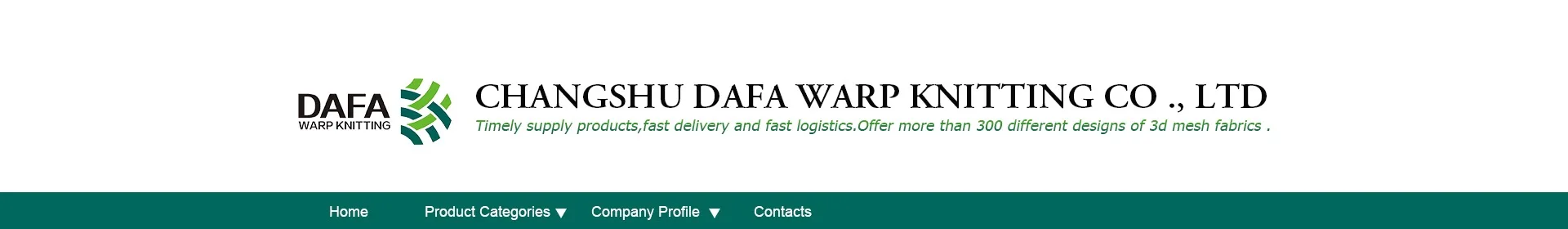 Principais produtos:Tecido espaçador 3D, produto têxtil doméstico, produto de bebê, tecido de malha de ar, travesseiro 3D respirável